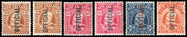 Official. 1910-16 perf 14x14½ set of 4 to 1s plus 6d deep carmine and 3d perf 14x13½, large part o.g. or o.g., the 1s with fractionally toned perfs otherwise fine. SG O74/O77, cat £400