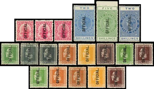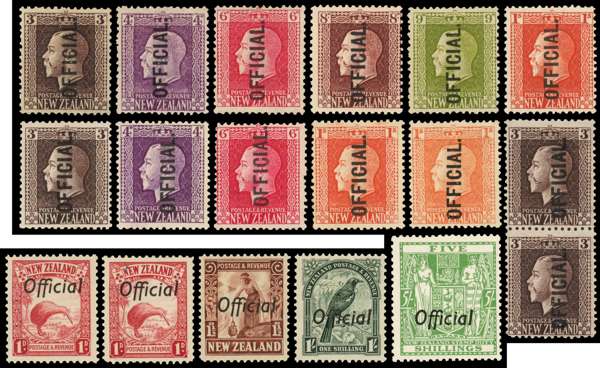Official. 1910-36 selection comprising 1910-26 1d ‘Dominion’ on DLR, Jones and Cowan papers, 1913-25 perf 14 2s, 5s and perf 14½x14 2s, 1915-34 DLR paper set of 6, Jones paper ½d and 3d, and Cowan paper set of 4 plus 1½d perf 14x15, 1915-27 set to 1s with all listed perfs plus 1s pale orange and 3d thin paper vertical pair, one without wmk, and 1936-61 single wmk set of 4 plus 1d perf 13½x14, odd minor blemishes but mostly fine large part o.g. or o.g., a very good basis on which to expand. SG O78/O85 btwn, O88/O99, O100/O105ba, O106a, O115/O119, cat £1395