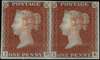 1841 1d Red brown Pl.11 (Trial on Dickinson silk thread paper). Unused four margin imperforate pair printed on Dickinson silk thread paper lettered ID-IE. A light horizontal crease as usually seen. Spec. DP22. Cat £9500.
