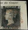 1840 1d Black Pl.1b. Plate number...