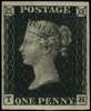 1840 1d Black Pl.8. Unused imperforate imprimatur lettered TH, Rare one of only 23 possible examples many of which are in institutional collections. Light crease confined to top margin. 1996 BPA Cert. Cat £18,000.