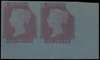 1840 1d Rainbow trial (State 2). A four margin bottom marginal horizontal corner pair printed in dull rose-red on white wove paper dipped in prussiate of potash. Spec. DP20(2)a.