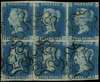 1840 2d Blue Pl.1. Used block of six (EJ-FL) London No.1...