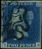 1840 2d Blue Pl.2. Used four margin example (TB) cancelled by a crisp black London No.2. MC. Small thin by nose and a light corner crease at top left nevertheless attractive. Spec. DS8wc. Cat £14,000. 1996 BPA Cert.