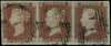 1841 1d Red-brown Pl.75. “Union Jack” Re-entry. Used huge four margin horizontal strip of three lettered LJ-LL showing ‘UNION JACK’ re-entry on LK. cancelled by Brampton ‘113’ numerals clear of variety. Attractive multiple.