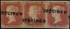 1841 1d Red-brown Pl.90. re-joined strip of three "SPECIMEN" type...