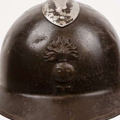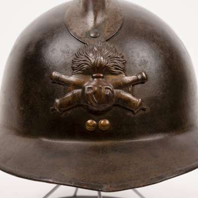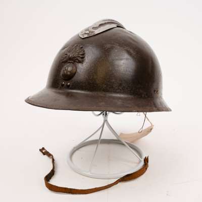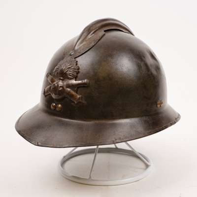Two French Adrian helmets - artillery and infantry. French Navy cap. 4th Gorkha Rifles felt hat, (4 items)