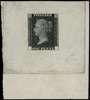 1890 1d Black Secondary Dies. Proof Printed in black on thin yellowish white paper cut down at top (62x54mm) resulting in the loss of the reversed “2” with some light toning as usual. Cat £10,000. Spec DP33b.