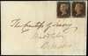 1840 1d Grey-black Pl.1a. (PI-PJ) Entire sent to the Countess of Jersey, Middleton, Bicester bearing a close to large four margin horizontal pair lettered PI-PJ cancelled by a crisp red MC's. Cat £1800 as a pair off cover. SG3, Spec. AS2.