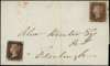 1840 1d Black Pl.2 & 1d Red-brown Pl.2. (PB, re-cut corner letters). Lovely matched pair consisting of a single 1d Black showing re-cut corner letters cancelled by a crisp red MC with a matching 1d red-brown (SG7) tied to cover by a black MC. SE.15.1840. SG2 & 7, Spec. AS14d & AS17e.