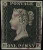 1840 1d Black Pl.5. (HH) Superb used four margin example neatly cancelled by a crisp violet MC. Very rare coloured cancellation. SG2, Spec. AS25vf. Cat £12,000.