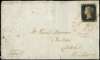 1840 1d Black Pl.6 (NJ). Used four margin example tied to front addressed to Windsor by a Cheltenham town datestamp in red as the sole cancellation for SP.1840. Slight overall toning and a small tear below “O of ONE” nevertheless a presentable and very rare piece. SG2j, Spec. AS41xb. Cat £20,000. 1994 RPS Cert.