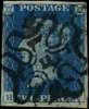 1840 2d Blue Pl.2. Used example just shaved at left, cancelled by a crisply struck black London No.11. MC. A presentable example of this difficult cancellation on this issue. SG5, Spec. AS8wk. 1984 RPS Cert. Cat. £14,000.