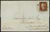 1841 1d Red-brown Pl.19 (EC). Fine wrapper sent from Totness to Devonport bearing a four margin 1d Red-brown (SG8, Pl.19) tied by a crisp Totness ‘Wessex’ datestamp DE.17.1842. SG8, Spec. BS8va. Cat £2750.