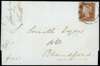 1841 1d Red-brown Pl.23 (QJ). Clean wrapper sent from Lyme to Blandford bearing a good to large four margin 1d Red-brown (SG8, Pl.23, QJ) tied by a crisp black Lyme ‘Wessex’ datestamp NO.17.1842. Scarcity B in Danzig & Goldsmith. Attractive. SG8, Spec. BS12va. 1988 BPA Cert. Cat £2750.