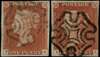 1841 1d Red-brown Pl.33. (PA State I & II). Used matched pair of close to large four margin examples both cancelled by black MC's. State II after re-entry in superb condition, state I showing central pin hole. Wonderful matched pair. SG8, Spec. BS22/g. Cat £1000+. (2)