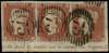 1841 1d Red-brown Pl.126 (TJ-TL) strip of three