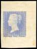 1902 1d Proof of the first (Later rejected) die reprinted example in ultramarine on (30 x 39mm). Some light tone spots. Spec. DP8b. Cat £12,000.
