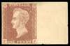 1850 1d 'Prince Consort' essay. Fine unused four margin imperforate right hand marginal example printed in brown, lettered FJ. Slight thinning at top. Scarce. Spec. DP71(2). Cat £2000.
