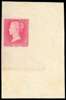 1902 1d Proof of the first (Later rejected) die reprinted example in Rose-carmine on (49 x 74mm) cream wove, Wmk. Postage paper. Some light tone spots. Spec. DP8b. Cat £12,000.