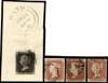 1840 1d Black Pl.11 state I & red-brown States I, II & III. Very fine used group of four consisting of a 1d Black and 1d red-brown both state I cancelled by black MC', a second 1d red-brown from state II and a final example from state III. An attractive group SG2 & 7, Spec. AS73, AS74, AS75 & AS75a. 1d Black Pl.11. accompanied by a 1976 RPS Cert. Cat £6,000+. (4)