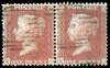 1855 1d Red-brown on blued paper Pl.22 Used pair (KC-KD)
