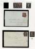 1840 1d Black Pl.8. Interesting group of six used adhesives from plate 8 consisting three matched pairs with 1d Red-brown (SG7). Four examples lettered AJ consisting of matched pairs from state I with O flaw and state II without O flaw and a matched pair lettered MI showing double letter M variety. Mixed condition but worth further inspection, scarce plate. SG2 & 7. Spec. AS49-AS55.