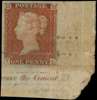 1841 1d Red-brown Pl.27 (TL). Unused o.g. four margin bottom right corner marginal example showing plate number “27” at bottom right and part sheet inscription “move the Cement”, deckled edge margin. Multiple creases and some overall toning, a rare positional piece. SG8, Spec. BS16.