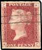 1878 1d Plate 191 (KC). Imperforate plate proof trial for lighter and more fugitive inks, printed in rose red on crown watermarked paper. Cancelled with manuscript horiontal lines. Scarce. Spec.DP39e. Cat £4000.