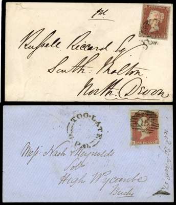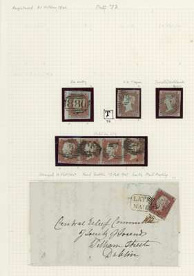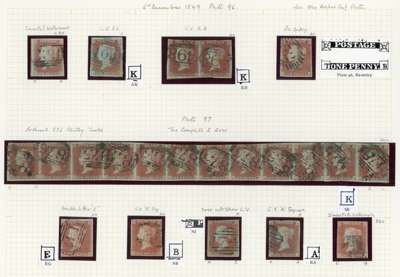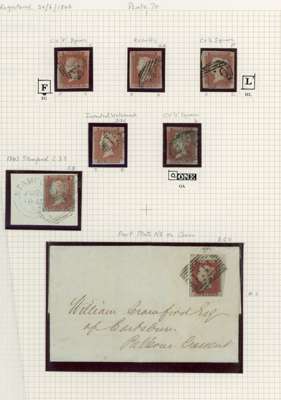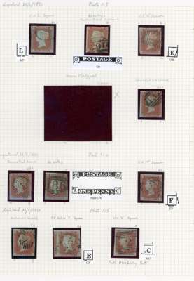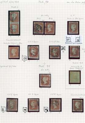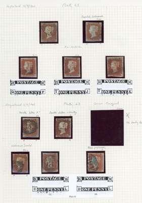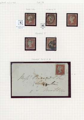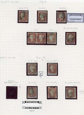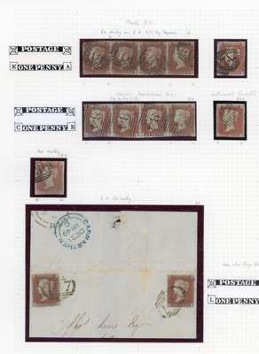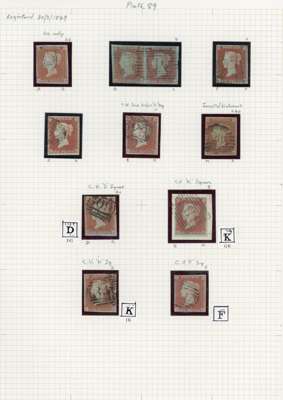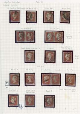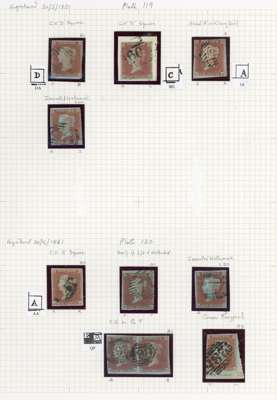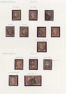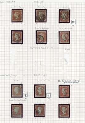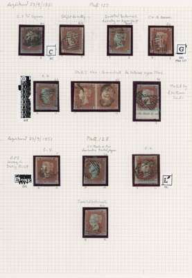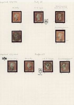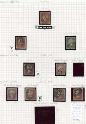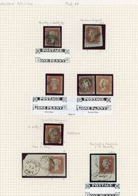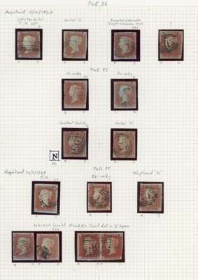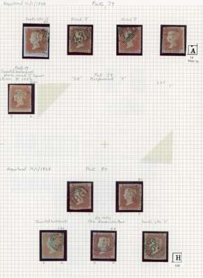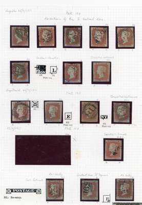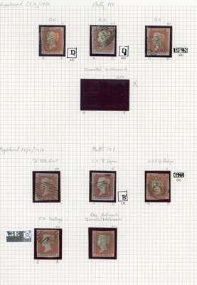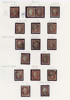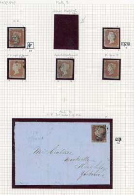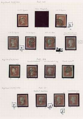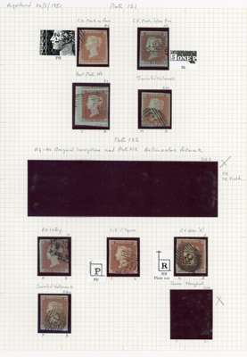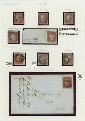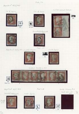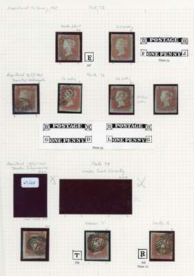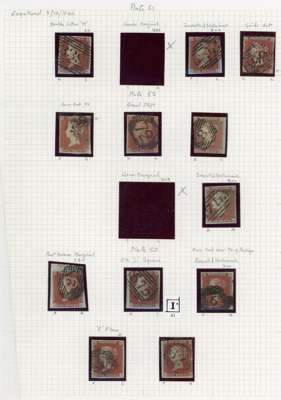 1841 1d Red-brown Pl.46-131 (SG 8-12, Imperforate, Alphabet I, Wmk. Small Crown). A magnificent used group of mostly four margin imperforate 1841 1d Red-brown nearly all cancelled by numeral cancellations (Several blue numeral cancelations). Including several shades, multiples (Pairs, strips, blocks and even an entire row), positional/plate number pieces, constant varieties, re-entry's, double letters, multiple states of certain letterings per plate and seventy watermark inverted examples (from the following plates Pl.46, 50, 51, 52, 53, 55, 57, 58, 60, 61, 62, 63, 64, 65, 66, 68, 69, 70, 72, 73, 76, 79, 80, 82, 83, 84, 85, 86, 88, 89, 90, 91, 92, 93, 94, 95, 96, 97, 98, 99, 101, 102, 103, 104, 106, 107, 108, 109, 110, 111, 112, 113, 114, 115, 116, 117, 118, 119, 120, 121, 122, 123, 124, 125, 126, 127, 128, 129, 130 & 131. Catalogue price of over £28,000 as x70 used watermark inverted examples alone). A magnificent study of these imperforate 1d Red-brown issues. SG8-12, Spec. BS35-91. (Many hundreds).