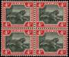 1914 4c jet-black and rose block of four, fine unmounted o.g. SG 36f, £240