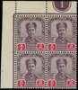 1898 $2 dull purple and carmine top left corner block of four with Plate number 1, fine o.g., hinged on the selvedge only. SG 50, £240