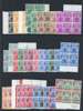 1949-58 set in blocks of four (a few are Plate blocks) plus twelve extra blocks, all shades, mostly CW-listed. A very nice group, the $5 the final (1958) printing and very scarce in a multiple. SG 133-147, £816