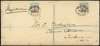 1887 registered cover (8¾ x 4") to Southend with two 2d green and scarlet, each tied by oval Registered/WCDO cancel of 31 JA 87. Roughly opened at left and with some peripheral wrinkles. SG 199