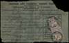 Postal History. 1899 FOREIGN AND COLONIAL PARCEL POST Certificate of Posting, bearing 5d Jubilee vertical pair with St John Street Rd CDSs of AP 24, paying the 10d insurance fee to Bombay. One stamp with blunt corner. The form is printed on extremely flimsy paper, almost tracing or greaseproof paper quality, and is torn and creased; most unusual. SG 207a