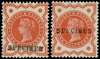 1887 Jubilee ½d vermilion two examples in vermilion and deep vermilion shades, each unmounted o.g. and overprinted SPECIMEN Type 9. SG 197s