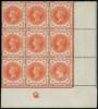1887 ½d vermilion Control Q block of nine from the vertical comb perforator, some bends and inconspicuous creasing, eight stamps unmounted o.g. SG 197, KC22a