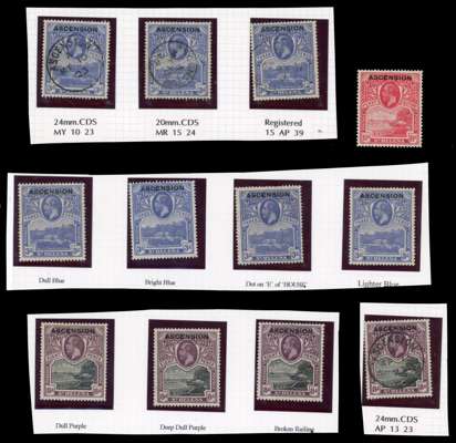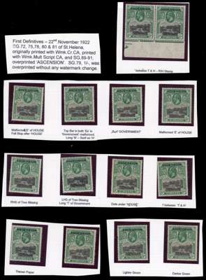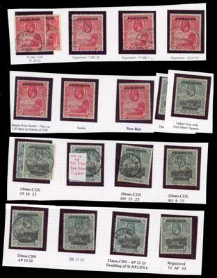 1922 overprints on St Helena collection (133) on Hagner sheets, mint and used. Duplicated, with small varieties and different postmarks, including forged with Madame Josephs (#19). Includes three 8ds used (one with St Helena postmark), two 1/-s used, four 2/-s used and four 3/-s used. An interesting group. SG 1-9