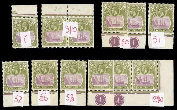 1924-33 5d mint positioned examples (136, including 9 of the 1930 printing) with seven blocks (including blocks of 8 and 15), mainly fine. SG 15d. £3808