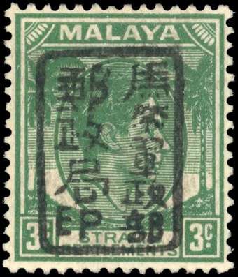 Malaya Japanese Occupation Straits 3c green, chop 'A' in black SG J149a
