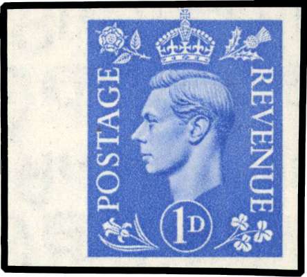 1951 1d Light ultramarine (New colour, SG504wi var). Superb unmounted o.g. left hand marginal imperforate imprimatur with "N.P. IMPRIMATUR" handstamp on reverse and inverted watermark (ex booklet pane). Scarce.