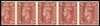 1951 2d Pale red-brown (SG506a, Wmk Sideways). Superb unmounted o.g. strip of five showing an extraordinary 5½mm perforation shift to right. A wonderfully visual variety. SG506a var.