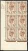 1938 5d Brown Control L/42 no bars block mint (SG469)