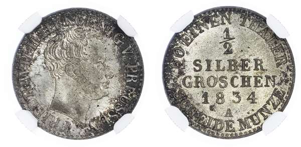 Germany, States, Prussia. Frederick William III AR 1/2 Silber Groschen. 1834A.