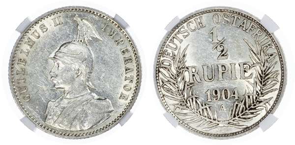 German East Africa. Wilhelm II AR 1/2 Rupie. 1904A.