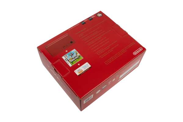 This lot features a factory sealed, brand new and never been used Nintendo DSi XL handheld. This is the limited edition ‘wine red’ Super Mario Bros 25th anniversary handheld that features an outline of the Mario's power-ups on the front of the handheld. It also comes with a physical copy of New Super Mario Bros for the 3DS
