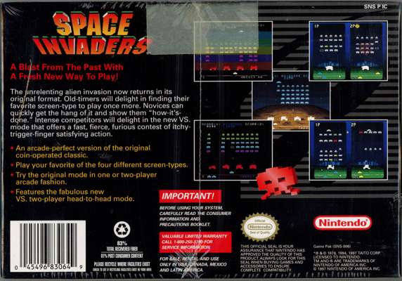 This lot contains a sealed copy of Space Invaders for the Super Nintendo. This game is for the PAL region/territory.