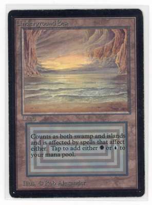 This Underground Sea from Beta initially presents as Light Play, however due to several examples of border inking (done to minimise visible wear), this card would be considered in Poor condition by Magic Cardmarket grading standards.