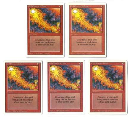 X64 copies of Red Elemental Blast from Revised, mostly around the Good/Excellent conditions with some exceptions.