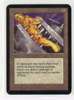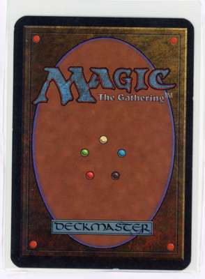 This iconic artifact has seen some play, but remains a fantastic example of its first printing. A light warp can be seen that is not detectable through a sleeve. Light wear to the surfaces and borders is also present, with a few small nicks visible mostly from the back.